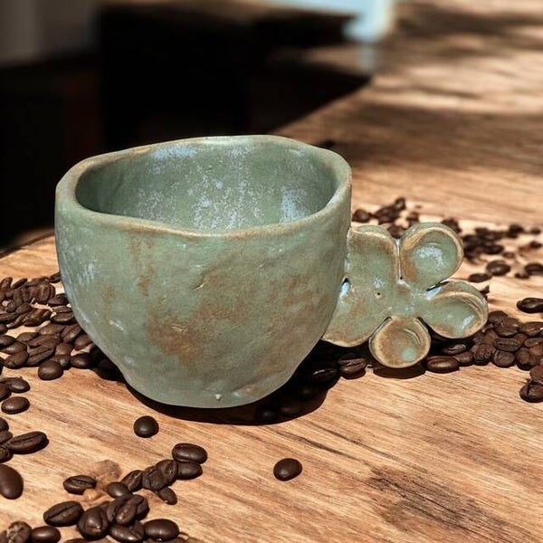 Tasse café sans anse en gré mat couleur vert/bleu et
